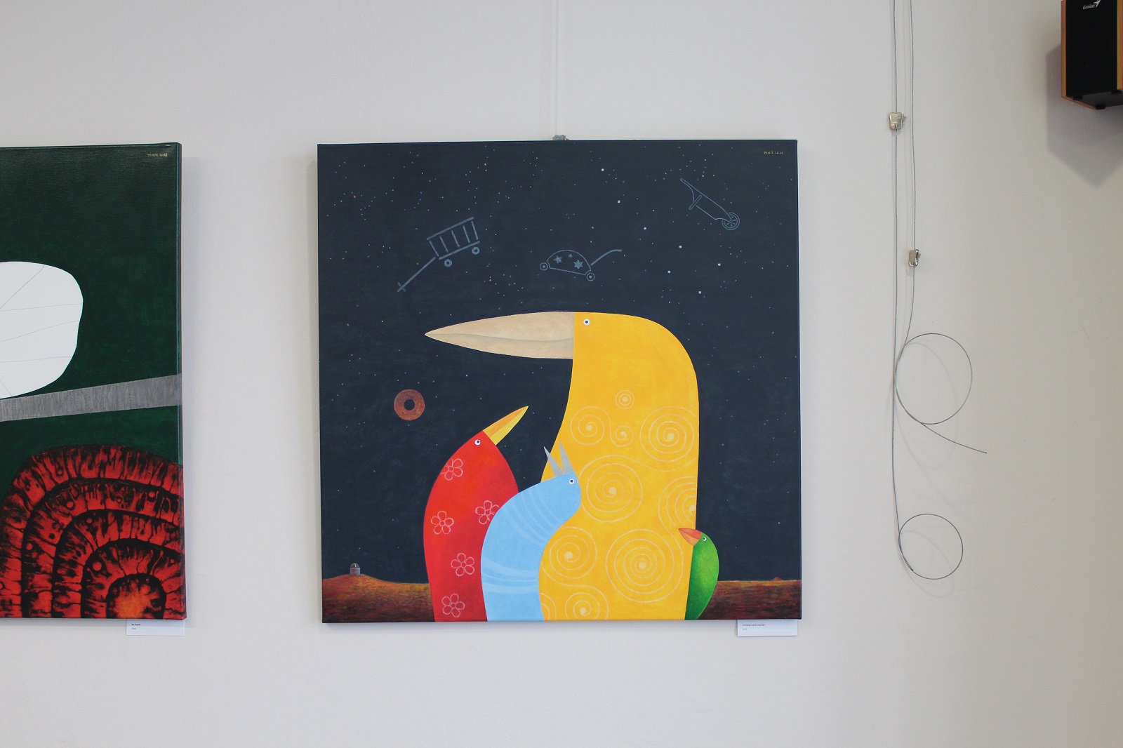 Druhé a na současné litoměřické výstavě asi nejvíce zastoupený bude cyklus nazvaný Ptíci. I toto zdánlivě lehce vyčerpatelné téma se ale pozvolna proměňuje v čase. Od velkých jednotlivých zobrazení velmi stylizovaných ptáků, kde se vlastně jednalo o jakési imaginární portréty, se zobrazovaní ptáci mění barevně i velikostí. Vstupují do neznámých krajin nebo galerijních prostorů a užívají si vlastní pocit svobody, glosují a po svém komentují svět lidí, který je obklopuje. Jsou to tajemné, tiché, někdy skytě vtipné obrazy, které, přestože se jsou zdánlivě o ptácích, jde ve skutečnosti o meditace a úvahy o stavu člověka 21. století.